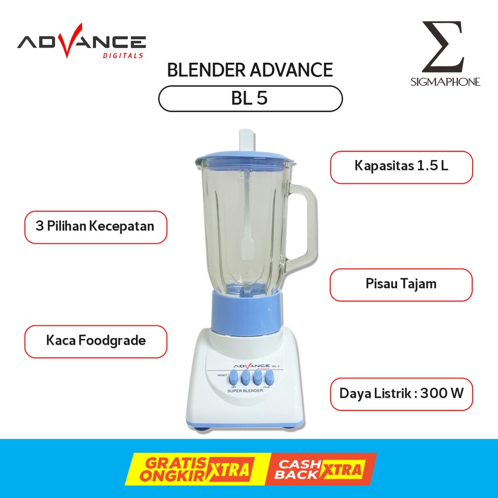 - BLENDER KACA 3IN1 BLENDER ADVANCE BL-5 MURAH 1.5 LITER MULTIFUNGSI FOOD GRADE PELUMAT BUAH GARANSI